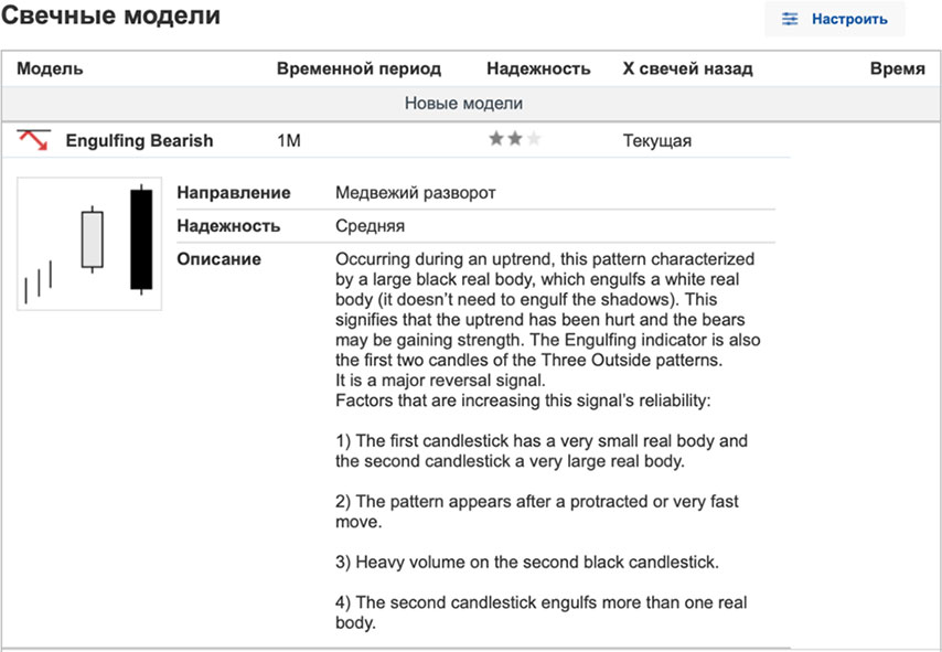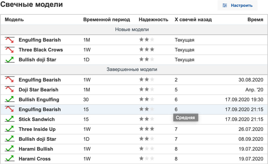 Вы найдете информацию на investing.com в разделе «Теханализ». Кроме всего в разделе «Теханализ» есть подраздел «свечные модели».