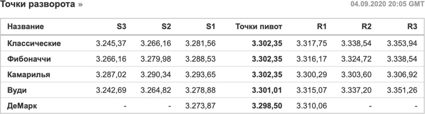 • S3 = минимальная цена – 2 × (максимальная цена – точка пивот).