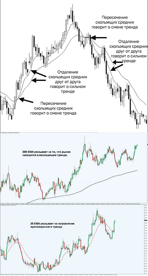 Трейдеры анализируют угол наклона МА. От него зависят изменения направления цены и сила тренда.