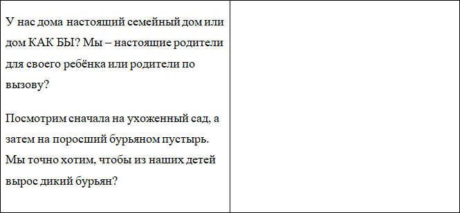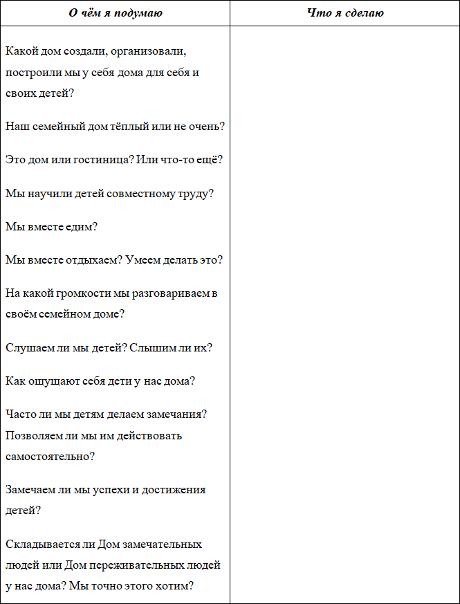 Только взрослые решают, какой именно семейный дом для себя и родительский дом для своих детей строить, создавать, организовывать. Взрослые делают это – строят, создают, организовывают – ежедневно и ежечасно.