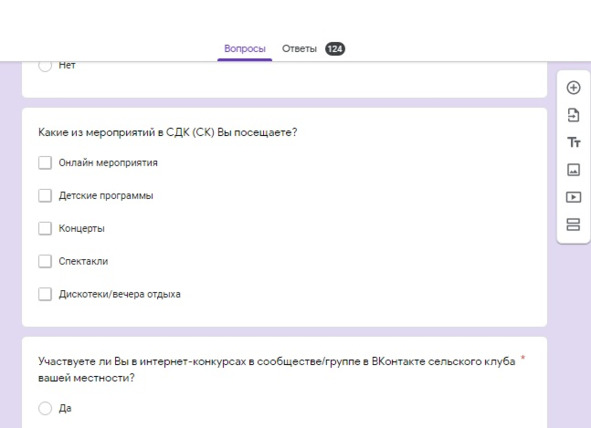 Скрин электронного опроса на сайте учреждения с применением гугл-приложения: