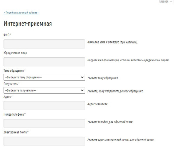 Скрин страницы Интернет-приемной на сайте учреждения: