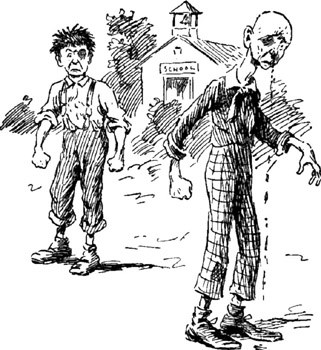 The forts, now threatened in the rear by Butler's army, surrendered, and Farragut went up to Baton Rouge and took possession of it. General Butler's occupation at New Orleans has been variously commented upon by both friend and foe, but we are only able to learn from this and the entire record of the war, in fact, that it is better to avoid hostilities unless one is ready to accept the unpleasant features of combat. The author, when a boy, learned this after he had acquired the unpleasant features resulting from combat which the artist has cleverly shown on opposite page.