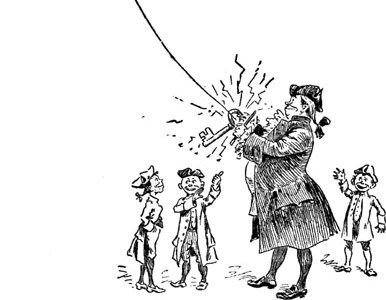Every time there was a thunderstorm Franklin would tell the foreman to edit the paper, and, armed with a string and an old door-key, he would go out on the hills and get enough lightning for a mess.