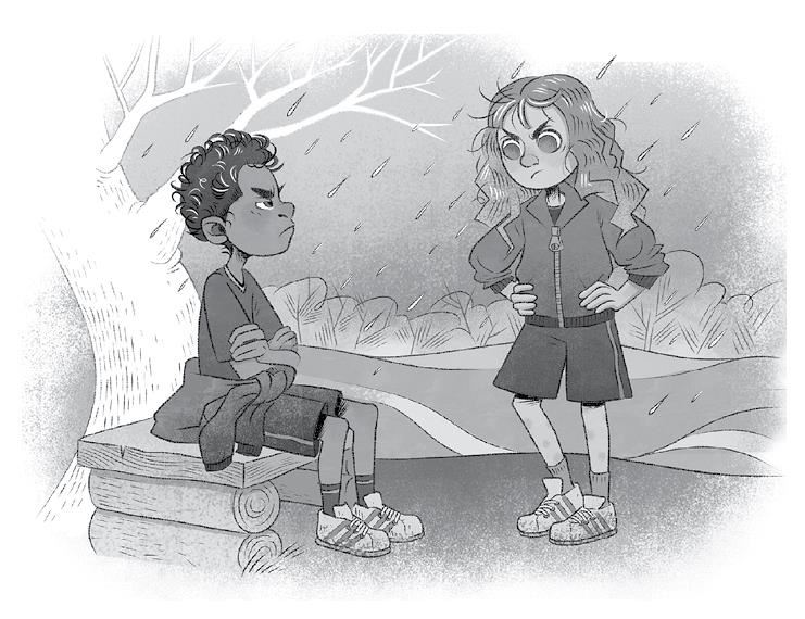 После обеда Молли со всем классом переодевалась к кроссу. Шёл проливной дождь, и дорожки на склоне холма, уходившие от школы в леса, раскисли от грязи. По стеклу раздевалки стекали мутные струйки, а Молли никак не могла отыскать свою кроссовку. Когда та наконец нашлась и они вместе с Рокки вышли под дождь, весь класс уже был далеко впереди. Рокки хотел нагнать остальных, но передвигаться по скользкой земле было очень трудно. Пробежав через заболоченный лесок, Молли совсем устала, а Рокки запыхался и начал задыхаться. Они присели передохнуть на скамейку под деревом. Кроссовки промокли, колени посинели от холода, но под пластиковыми куртками было очень жарко. Рокки снял куртку и завязал её вокруг пояса.