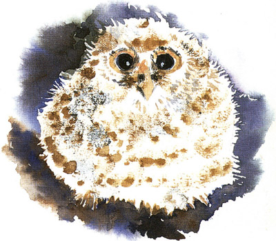 Fingerprints make good textural marks. Here they were used to describe the baby owl’s fluffy down.