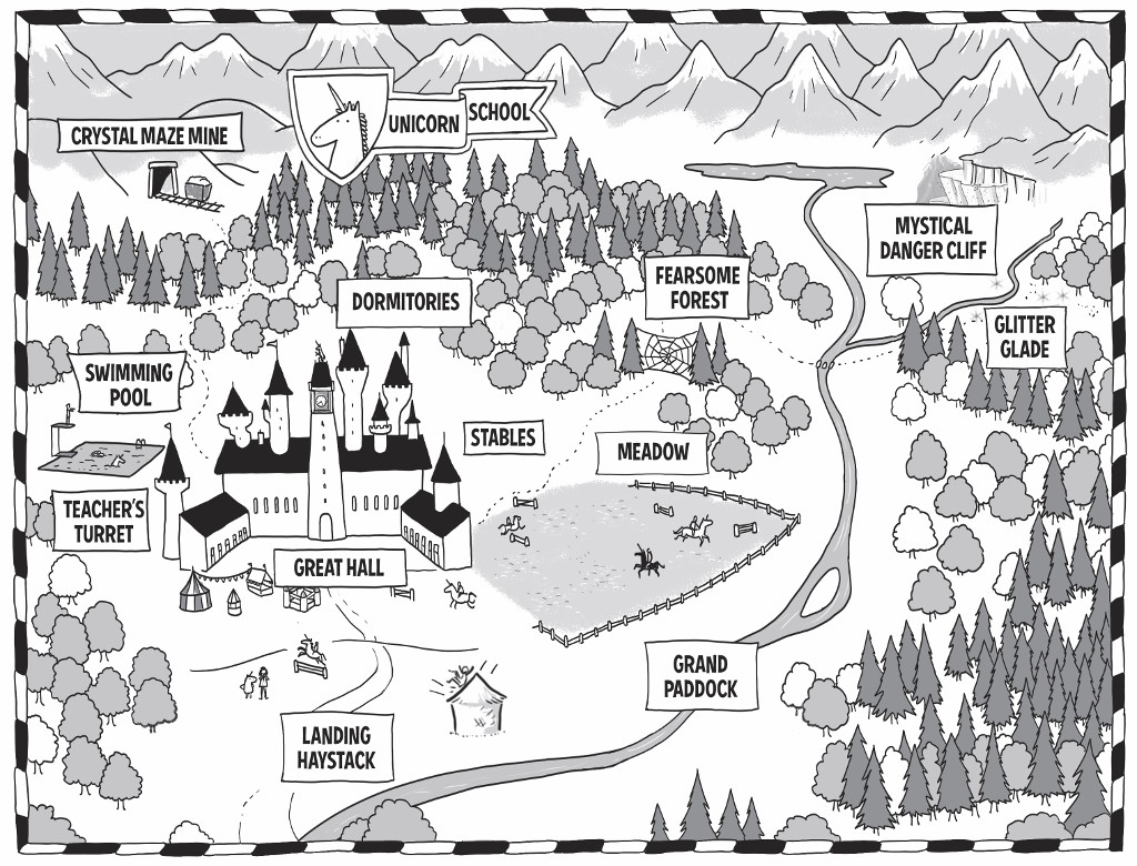 Mira reached inside the envelope and pulled out a leaflet containing all the information about the school, including a map and the School Rules. Mira thought she might faint with delight. Unicorn School was going to be BRILLIANT!