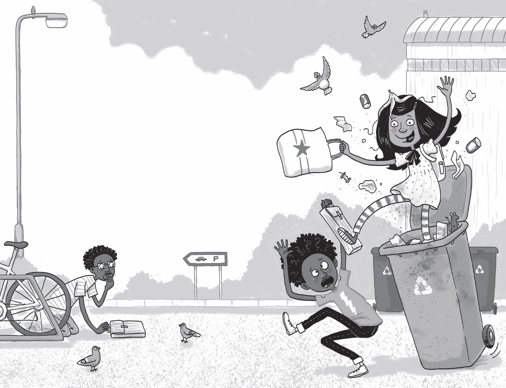 Mira clambered into the bin and held her breath. This was SO exciting! (Also, it really stank.) In just a few seconds she’d be in Unicorn School . . .