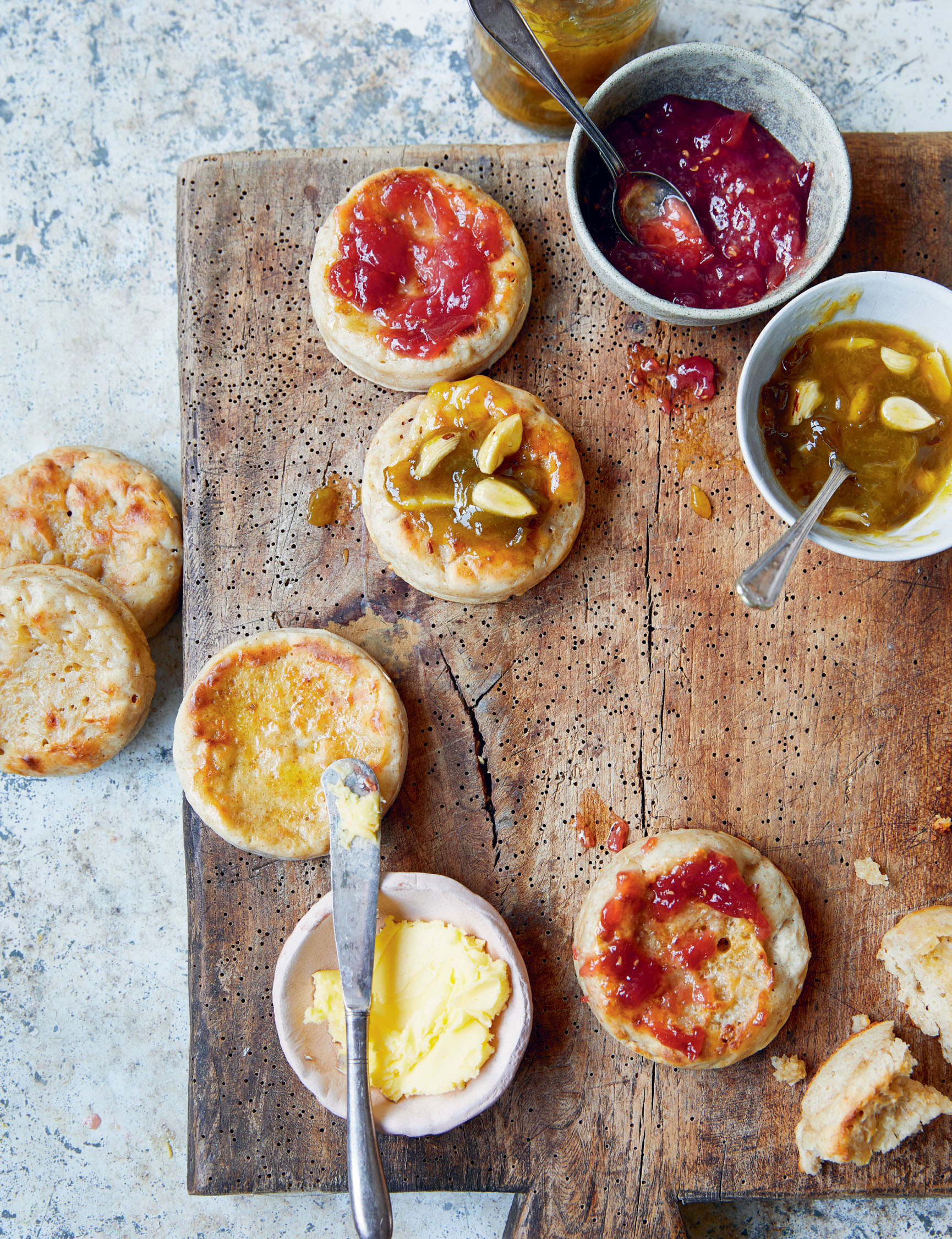 6 Once all the crumpets are made and cooled, grill or toast them to perfection, or, if you’re doing lots at once, you could roast them in a hot oven for 3 minutes. Slather with butter and jam, or Marmite and cheese, smashed avocado and kimchi, or tahini with really good honey, or peanut butter… you get the drift. These keep well wrapped in cling film in the fridge for a couple of days (not longer, as the sour cream will moulder). I also like to make them ahead and freeze them.