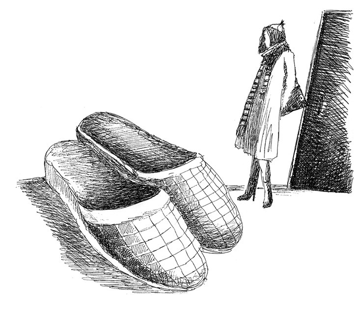 Лариса улыбнулась и, сославшись на привычку и теплый пол, сказала, что останется босиком.