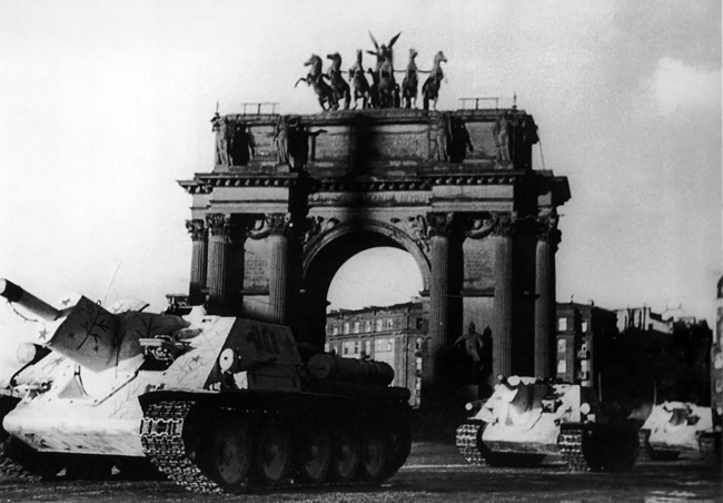 СУ-122 мимо Нарвских ворот выдвигаются к фронту