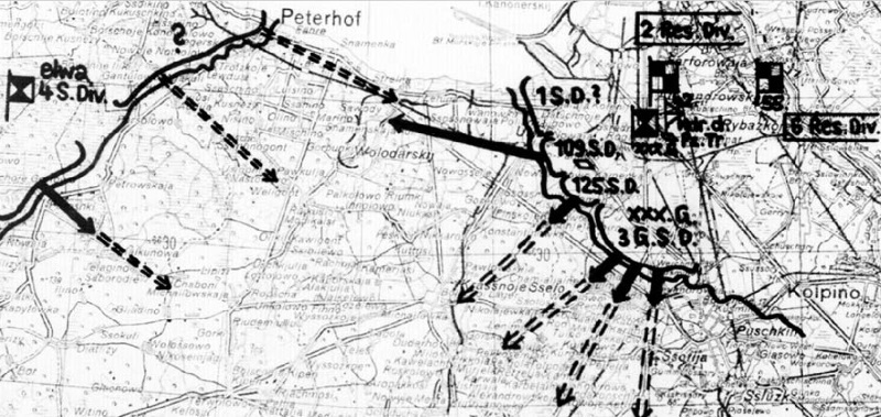 Одновременно 18-я армия приказала XXVIII ак направить 3-й дивизион 3-го минометного полка в распоряжение III тк СС. Вместе с 23-й (танк.) батареей 3-го мп этот дивизион под управлением штаба 3-го мп должен был развернуться в Гостилицах (8, frame 9119857).