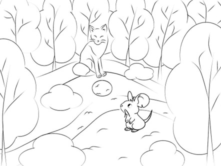 "Hello, little mouse! What are you doing here?" the sly fox asked.