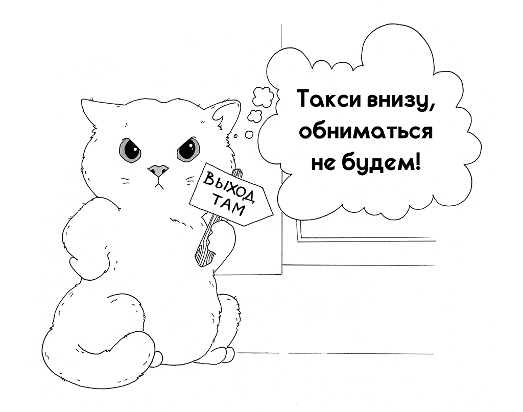 Говорят, что коты редко выражают эмоции и по их мордам сложно понять, что они думают в данный момент. С уверенностью могу сказать, что я видела кошачью улыбку. Она украсила Бенедикта, когда я, взяв за ручку чемодан, побрела к лифту. И если бы он мог, то сказал: «Такси внизу, обниматься не будем». А если бы он еще и писать умел, то по прилете в Москву я бы получила сообщение: «Надеюсь, ты долетела и возвращаться не собираешься. Я тебя не жду, новой встрече рад не буду. Асталависта, человечишко».