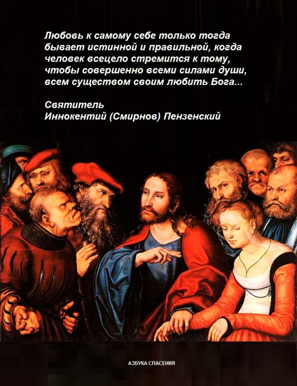 – И священник… видев его, мимоиде… и левит… видев, мимоиде (Лк.10:31,32). Правы они… Не знают… никогда не слышали Евангелие о добром самаряныне! Что сказать? Себя самих любим, а других нет. Любовь к себе уничтожает любовь к ближнему, поэтому так и поступаем. Но любящий себя живёт не по духу Евангелия. Если бы Христос думал о Себе, то сидел бы на Небе, не приходил бы на землю, не страдал, не распинался бы ради нашего спасения.