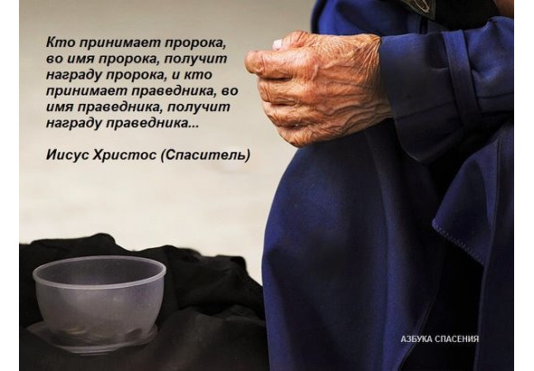 Смотрите, не творите милостыни вашей пред людьми с тем, чтобы они видели вас: иначе не будет вам награды от Отца вашего Небесного. Итак, когда творишь милостыню, не труби перед собою, как делают лицемеры в синагогах и на улицах, чтобы прославляли их люди. Истинно говорю вам: они уже получают награду свою. У тебя же, когда творишь милостыню, пусть левая рука твоя не знает, что делает правая, чтобы милостыня твоя была втайне и Отец твой, видящий тайное, воздаст тебе явно (Мф.6:1—4).