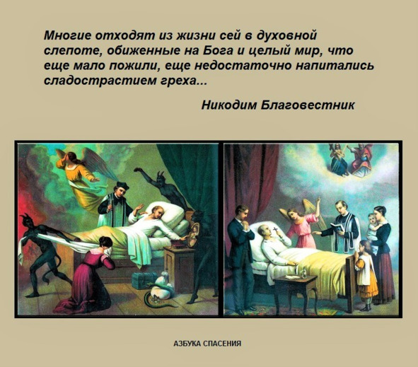 Многие считают, что даровав бытие, Бог должен устроить для них еще и «сладкую жизнь» на земле. При этом, либо совсем не желают прислушиваться к Его законам и заповедям, либо делают это лицемерно чисто внешне, ограничиваясь всеобщими церковными ритуалами, такими как крещение, хождение на службы, венчание, отпевание, освящение авто и жилищ, и пр. Творец же не вмешивается в свободную волю образа Своего – человека, но только просвещает тихим гласом совести, что есть добро, а что зло в мире сем. Однако, к Божиему гласу мало кто прислушивается, желая исполнять только свою волю, на самом же деле власть тьмы, таинственно уводящую его всеваемыми помыслами с пути узкого и истинного на путь пространный и гибельный. Так и отходят из жизни сей в духовной слепоте, обиженные на Бога и целый мир, что еще мало пожили, еще недостаточно напитались сладострастием греха… Истинные же чада Божии слышат глас Владыки своего, как в совести, так и в Писаниях, гласящий: