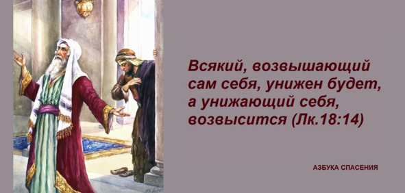 Сказал также к некоторым, которые уверены были о себе, что они праведны, и уничижали других, следующую притчу: два человека вошли в храм помолиться: один фарисей, а другой мытарь. Фарисей, став, молился сам в себе так: «Боже! благодарю Тебя, что я не таков, как прочие люди, грабители, обидчики, прелюбодеи, или как этот мытарь: пощусь два раза в неделю, даю десятую часть из всего, что приобретаю». Мытарь же, стоя вдали, не смел даже поднять глаз на небо, но, ударяя себя в грудь, говорил: «Боже! будь милостив ко мне грешнику!» Сказываю вам, что сей пошел оправданным в дом свой более, нежели тот: ибо всякий, возвышающий сам себя, унижен будет, а унижающий себя возвысится (Лк.18:9—14).