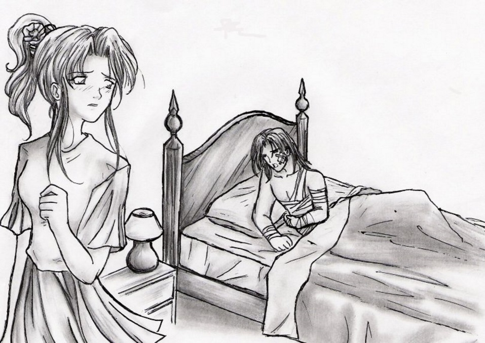 Er sah ziemlich schlecht aus, aber der Schlag, den sein Kopf abbekommen hatte, war das Schlimmste. Ihr GroÃvater sagte, dass er davon wohl eine Weile schlafen würde. Er hatte sie auch darüber informiert, dass, wenn zwei Beschützer miteinander kämpfen, es ein wenig gefährlicher war, als wenn zwei Menschen sich miteinander anlegten. Opa und seine Legenden⦠sie brauchte keine Legende um zu wissen, dass dies schlecht aussah. Sie hoffte nur, dass Shinbe keinen Gehirnschaden davontragen würde. Dass er so lange bewusstlos war, war kein gutes Zeichen. Sie betete, dass er bald aufwachen und ihr sagen würde, dass alles in Ordnung war.