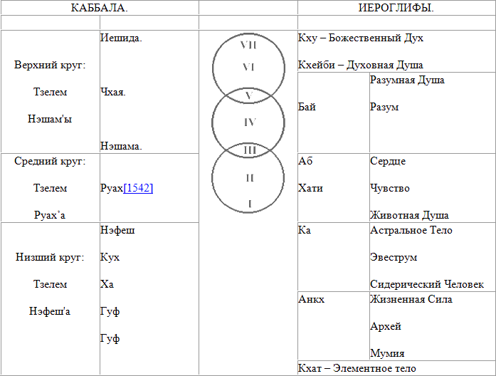 На левой стороне помещены каббалистические наименования соответствующих человеческих принципов, а на правой – иероглифические наименования с их пояснениями, как и на диаграмме Франца Ламберта.[1545]