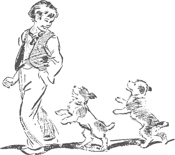 Мальчишка остановился и подошёл к ребятам, хитро улыбаясь. Вслед за ним увязались два маленьких терьера.