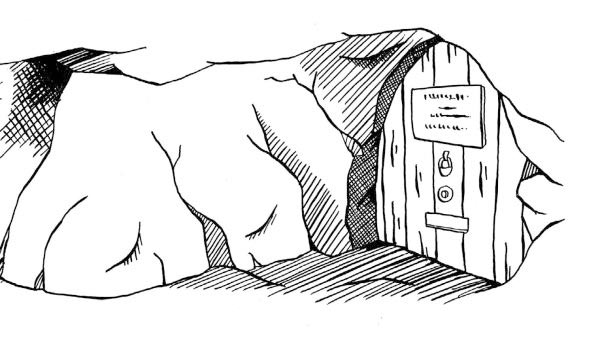 Все упали духом. Джо, первым придя в себя, направился по туннелю. Друзья петляли по лабиринтам, сворачивая то направо, то налево, то поднимаясь вверх, то спускаясь вниз. Под потолком тянулась бесконечная череда зелёных светильников. Наконец они упёрлись в незнакомую жёлтую дверь с синим молоточком, синим колокольчиком, синим почтовым ящиком и табличкой, чьи синие буквы складывались в следующие слова: