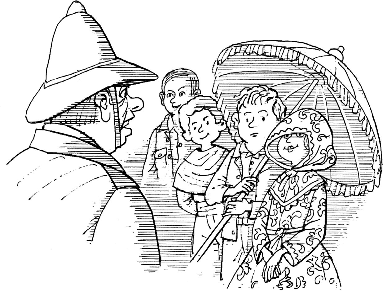 Мистер Гун наконец рассмотрел группу иностранцев и… своего племянника. Констебль пошёл на него, а Эрн схватил зонт и попятился назад.