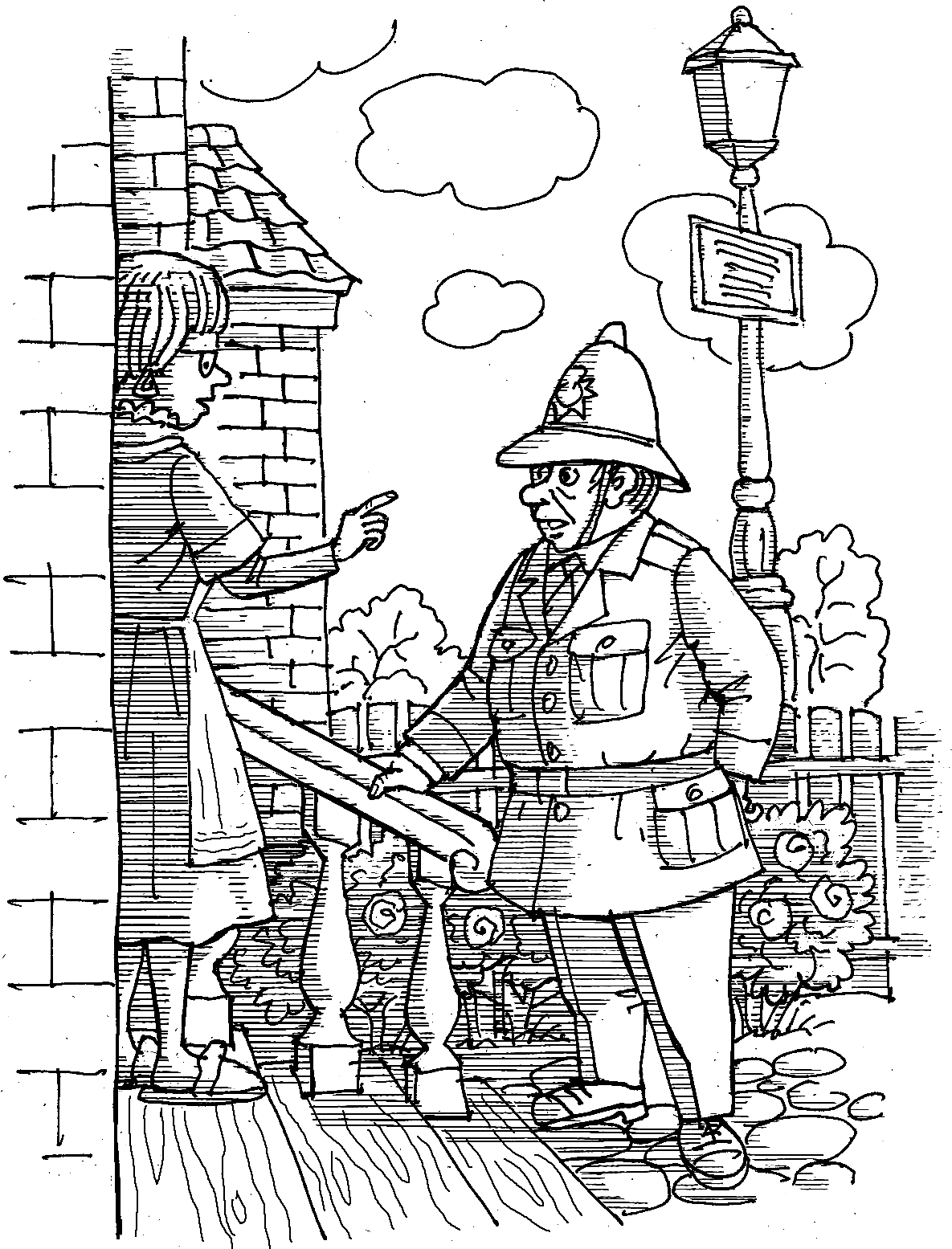 Дальше в игру включился Бастер: сорвавшись с места, он вцепился зубами в прищепки для брюк, которыми пользовался констебль, чтобы штанины не заедало велосипедной цепью.