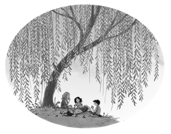 Казалось, остров дрейфует по тёмным водам, точно кораблик. На нём росли деревья, а в центре возвышался маленький холм. Остров был таинственный, одинокий, прекрасный. Дети не могли от него глаз отвести. Они уже заранее любили его. Как будто всю жизнь мечтали о нём. Он казался по-настоящему волшебным.