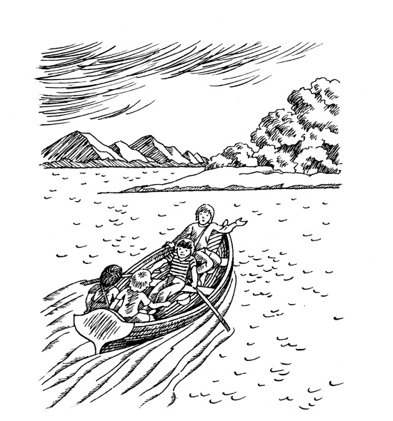 Мальчики взялись за вёсла, и лодка с четырьмя детьми отчалила от берега. Солнце палило нещадно, зато лёгкий ветерок то и дело обдувал их лица.