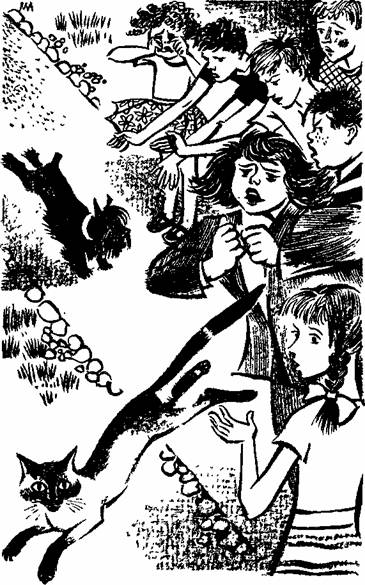 Бетси стояла и размышляла. Нечего и думать спустить Черную Королеву вниз, пока не уберут Бастера. На дереве, пожалуй, ей будет безопаснее. Бетси снова посмотрела на Черную Королеву, и кошка замурлыкала. Она любила маленьких девочек.