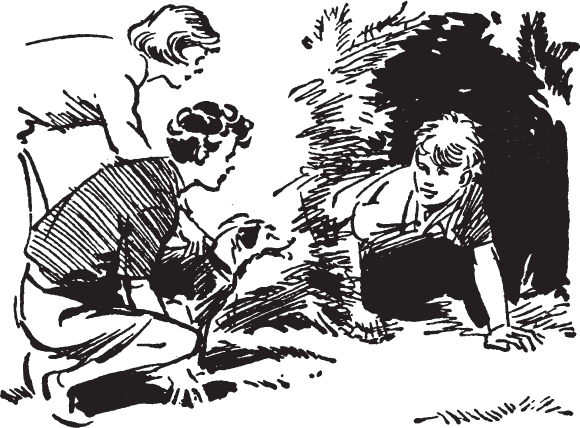 После этого у девочек отпало всякое желание исследовать старый дом, и они вместе с Тимми вернулись в лагерь. Пёс было улёгся, но тут же вскочил и полез под густой и колючий дроковый куст.