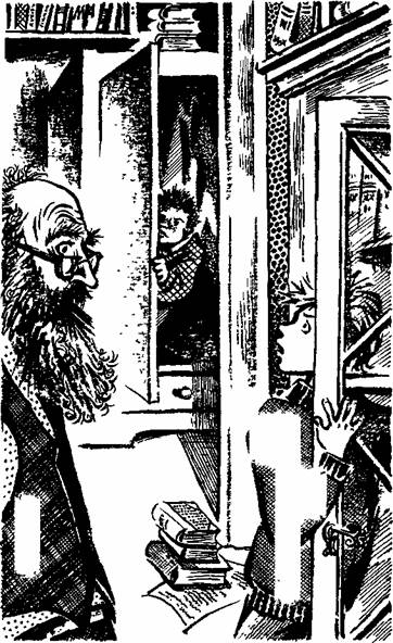 И Ларри проскользнул в кабинет. Он предусмотрительно захватил с собой карманный фонарик и начал шарить лучом по комнате. Сколько бумаг в этом захламленном кабинете! Бумаги и книги на письменном столе, бумаги и книги на полу и на стульях. Книжные шкафы до самого потолка по всем стенам и на камине тоже книги! Мистер Вонюнг был явно очень ученым человеком!