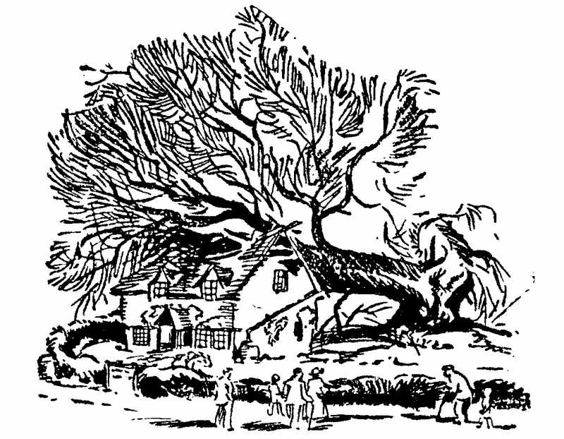 Ветер дул всю ночь, и всё же к утру его порывы стали ослабевать. Шторм тоже затихал. Рыбаки бросились осматривать свои лодки на берегу. К счастью, они сильно не пострадали. Все в рыбацкой деревне теперь только и говорили что о необычайном ночном происшествии в усадьбе Киррин-Коттидж. Жители намеренно приходили посмотреть на огромное дерево, рухнувшее на дом. Оголённые корявые корни шевелились в воздухе, будто живые.