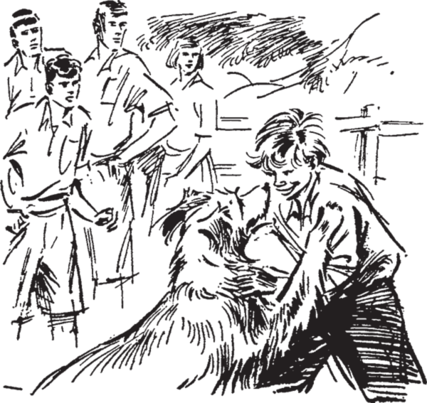 Тим вёл себя странно. Он то припадал к земле и тявкал, то, поджав хвост, убегал, но тут же снова возвращался и наскакивал на всех трёх колли, пытаясь схватить за ухо каждую по очереди. Колли лениво огрызались, но прощали такие заигрывания. Скотчтерьер вился тут же. Он поддерживал игру и сам нападал на Тима, словно ревновал.