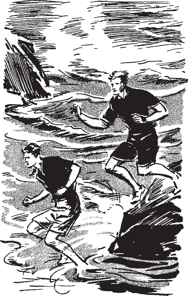 Джулиан ничего не ответил, но тоже занервничал. Он не знал, что делать. Можно было рискнуть и попробовать пройти дальше вброд, выждав удобный момент между двумя накатывающимися волнами… Нет, это было бы чистым самоубийством. И в этот момент ребят едва не накрыла огромная волна, которая незаметно подкралась сзади и обрушилась со всей силой на пляж. Больше оставаться тут было нельзя. Ещё несколько минут, и путь назад будет отрезан.