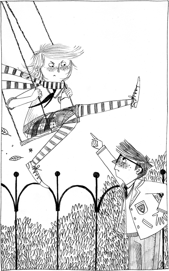 Она залилась злорадным смехом. Мальчик поднялся, стащил её с качелей и дёрнул за волосы.