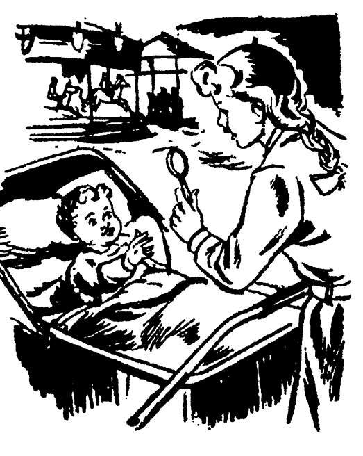 Ребята с удовольствием съели пряники. Питер увидел рядом детскую коляску. В ней сидела маленькая девочка и смеялась. Девочка была довольно чумазая, а коляска – старая, сломанная и грязная, но малышка была такая весёлая, что ребята не могли оторвать от неё глаз.