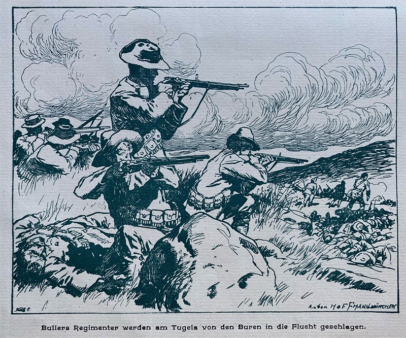 Не забывается, как они, несмотря на превосходство в численности, загнали генерала Юла в город Ледисмит 0, как попали в руки 1200 англичан с шестью орудиями при Николсонснеке, как затем заманили совершенно растерянных англичан в треугольник Коленс – Фрер – Спрингфилд и уничтожили их.