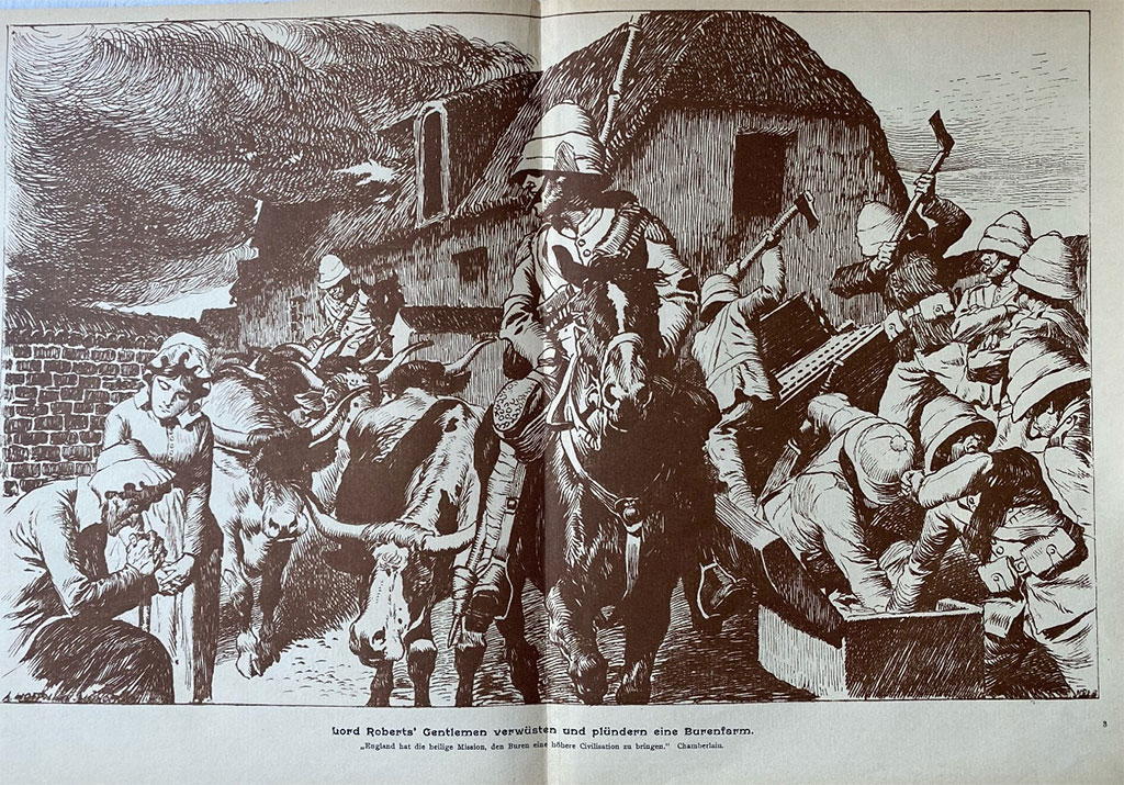 Но и англичане не сидели сложа руки. Неоднократно приходилось использовать знаменитых иностранцев из Йоханнесбурга, чтобы возбудить в Европе введеноое в заблуждение еврейскими газетами общественное мнение против якобы имевшей место бесхозяйственности в государстве Трансвааль, которое якобы было. Летом 1899 г. перед этими газетами было поставлено задание убедить людей в том, что Англия лишь великодушно жертвует собой ради защиты прав буров… Только потому, что буры хотели предоставить иностранцам избирательное право, которое буры или английское правительство потребовали для них после пяти лет пребывания в стране, только после семи лет началась война, которая превратила прекрасную страну в пустыню и, будь воля англичан, стерла бы нижнегерманское население с африканской земли.