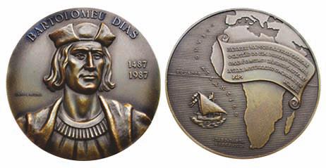 Памятная медаль в честь плавания Бартоломеу Диаша, выпущенная в Португалии в 1987 г.