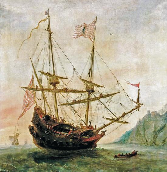 Андрис ван Эртвельт. Корабль Колумба «Санта-Мария» на якоре. 1628