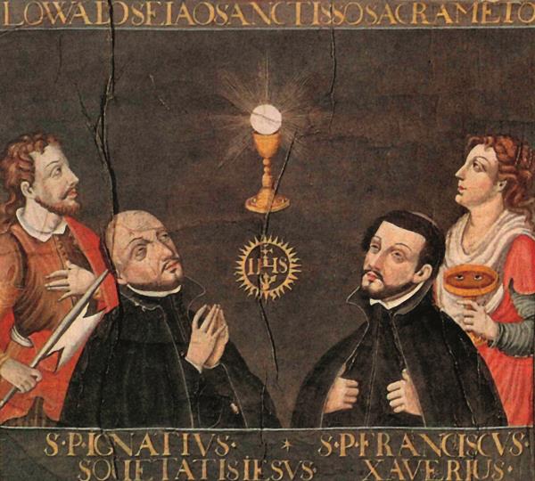 Неизвестный художник. Игнатий Лойола и Франсиско Хавьер перед чашей Св. Грааля. 1600