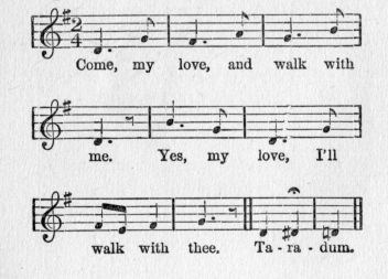 Come, my love, and walk with me.Yes, my love, I'll walk with thee.Ta-ra-dum.