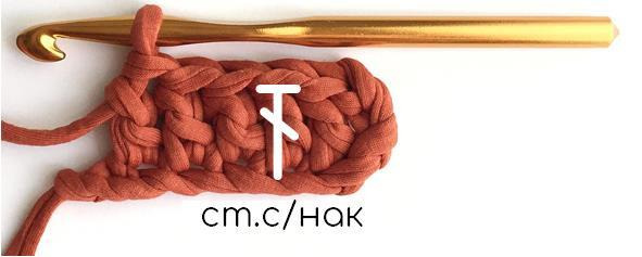 Полустолбик с накидом – делаем накид на крючок (накидываем рабочую нить на крючок), вводим крючок в петлю основания, захватываем рабочую нить – протаскиваем, на крючке – 3 петли, опять захватываем рабочую нить и провязываем все три петли на крючке сразу.