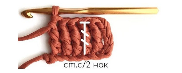 2 ст. без/нак в одну петлю основания – два столбика без накида в одну петлю основания (прибавление)
