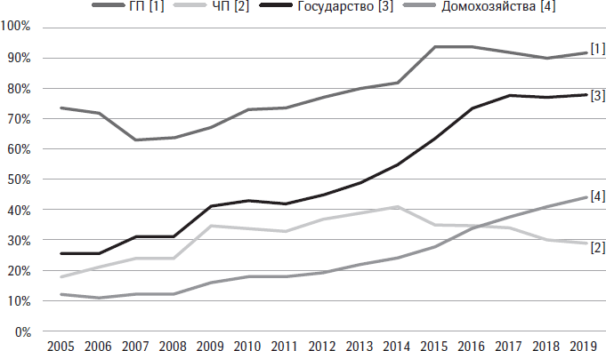 Наконец, ГП получают выгоду, платя очень маленькие дивиденды государству или не платя вообще. Хотя государство теоретически имеет право на всю прибыль ГП после выплаты налогов, Китай всегда избегал забирать дивиденды у ГП[15]. Прекрасная модель – государство берет на себя расходы, а прибыль компания оставляет себе.
