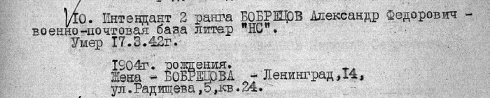 Из списка офицеров умерших весной 1942 в госпитале на Тульской