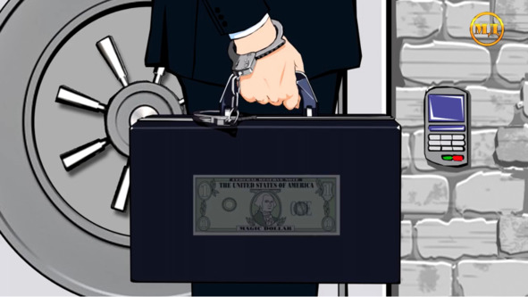 Гросс вложил купюру в конверт, который убрал в специальный бронированный чемоданчик-дипломат. Дипломат он пристегнул к левой руке Майкла хромированными наручниками и передал ему ключ.