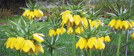 Обычно во время активного роста стебля и образования бутонов у нас в области случаются ночные заморозки. Минус 1–2°С фритиллярия переносит спокойно, но при -3-5°С она склоняется головой до самой земли, спасая будущие цветки от мороза. Днем, когда становится теплее, растение опять выпрямляется. Если заморозки сильные и затяжные, цветки могут погибнуть еще до распускания. Поэтому в морозные ночи фритиллярию императорскую надо укрывать, и потеплее. Например, надеть на нее колпак из нескольких слоев газеты, а сверху накинуть пару слоев какого-нибудь укрывного материала вроде лутрасила или пленку. Хлопотно, но за красоту надо платить.